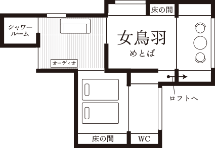 広縁3畳・ベットルーム6畳・次の間3畳・ロフト